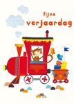Leuke verjaardagskaart met illustratie van een trein en de tekst: Fijne verjaardag.
