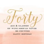 Leuke verjaardagskaart met de tekst: Forty, Age and glasses of wine should never be counted. Happy Birthday.