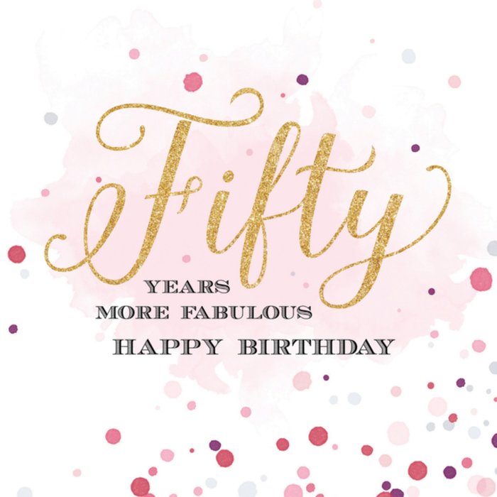 Leuke verjaardagskaart met de tekst: Fifty years more fabulous. Happy birthday