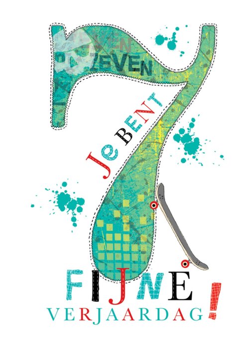 Leuke verjaardagskaart met de leeftijd 7.