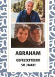 Iemand die 50 wordt? Hoe leuk is het om een leuke Abraham verjaardagskaart te sturen! Op deze kaart kun je twee leuke foto's zetten. Ook staat er de tekst: abraham, gefeliciteerd 50 jaar.