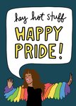 Leuke pride kaart met illustratie en de tekst: Hey hot stuff happy pride!
