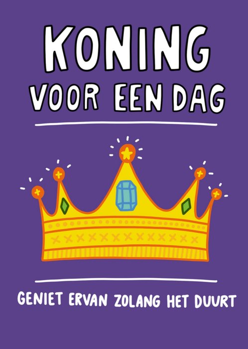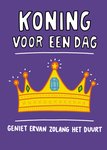 Grappige verjaardagskaart met de tekst: Koning voor een dag. Geniet ervan zolang het duurt.