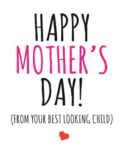 Leuke Moederdagskaart met de tekst: Happy Mother's day! (From your best looking child).