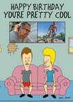Kleurrijke verjaardagskaart met Beavis and Butt-Head, groene achtergrond en de tekst: 'Happy Birthday. You're pretty cool'. Verras iemand met deze leuke verjaardagskaart met aanpasbare fotos van Beavis and Butt-Head en Paramount.