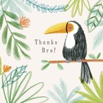 Bedank iemand met deze leuke kaart met een toekan en de tekst: Thanks bro.