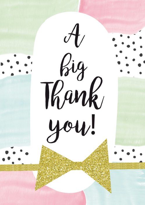 Schattige kaart met verschillende pastel tinten en een goude strik op de kaart om iemand mee te bedanken met de tekst 'A Big Thank You'.