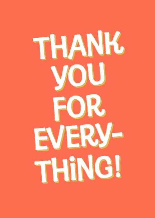 Wie wil jij bedanken? Een leuk oranje/zalm-kleurig kaartje met de tekst: "Thank you for everything!"