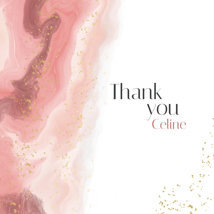 Op deze leuke abstracte kaart staat: Thank you. Ook kun je een naam toevoegen.