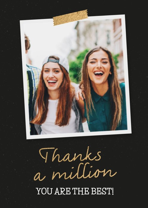 Op deze leuke bedanktkaart staat: Thanks a million. You are the best! Ook kun je een foto toevoegen.