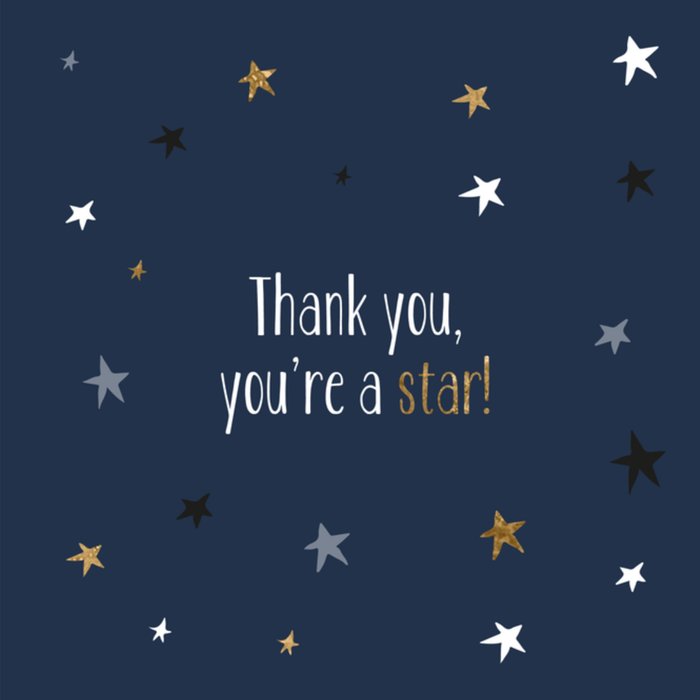Leuke bedanktkaart met tekst: Thank you, you're a star!