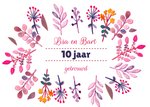 Witte en trendy uitnodiging van Greetz, voor een huwelijksjubileum. Op de voorkant staan roze bloemen, en kunnen namen en een jaartal worden toegevoegd.