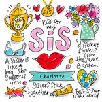 Leuke wenskaart met illustraties en aanpasbare naam.