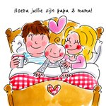 Leuke geboortekaart met illustratie en de tekst: Hoera jullie zijn papa en mama!
