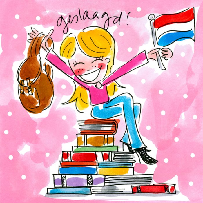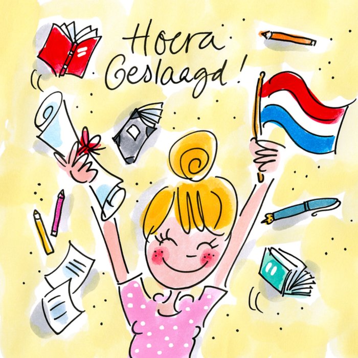 Verras met deze vrolijke geslaagdkaart. De kaart is niet aanpasbaar.