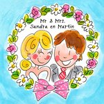 Een leuke en vrolijke Blond Amsterdam met een bruidskoppel in het midden. De namen zijn aanpasbaar.