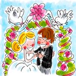 Een leuke en vrolijke huwelijkskaart Blond Amsterdam voor een pas getrouwd stel met op de kaart een bruidskoppel.