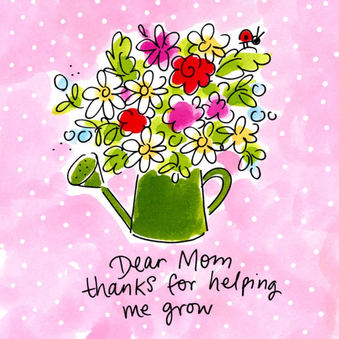 Stuur deze lieve kaart met bloemen aan je moeder met Moederdag. Op de kaart staat: Dear mom thanks for helping me grow.