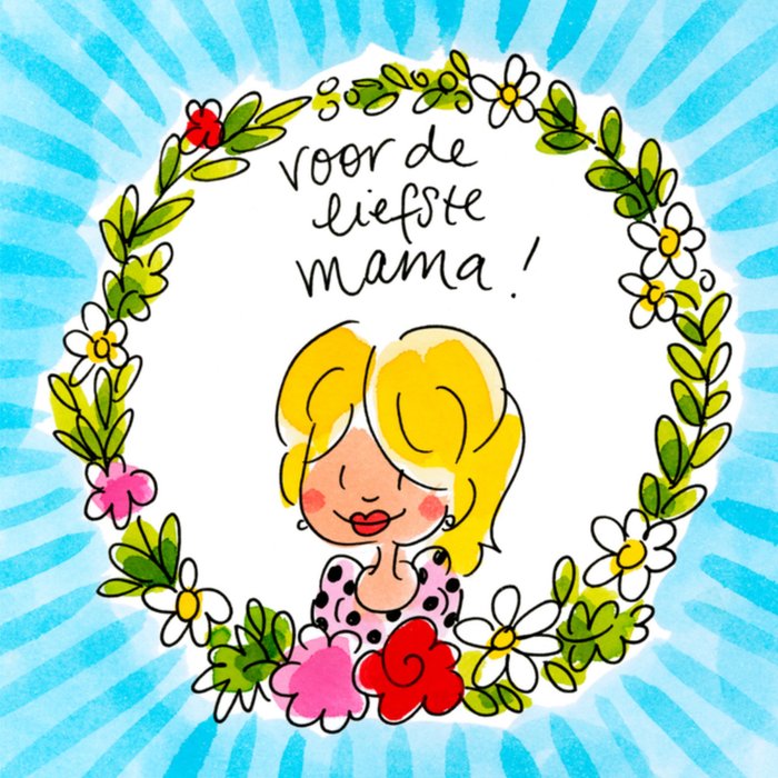 Stuur deze kaart voor moederdag naar de allerliefste mama van de wereld. De kaart is leuk geillustreerd met een tekening van een vrouw en met bloemetjes.