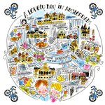 De groetjes doen vanuit onze hoofdstad Amsterdam? Verstuur dit illustratiekaartje met alle typische highlights uit deze mooie stad. A lovely day in Amsterdam.