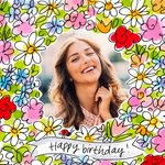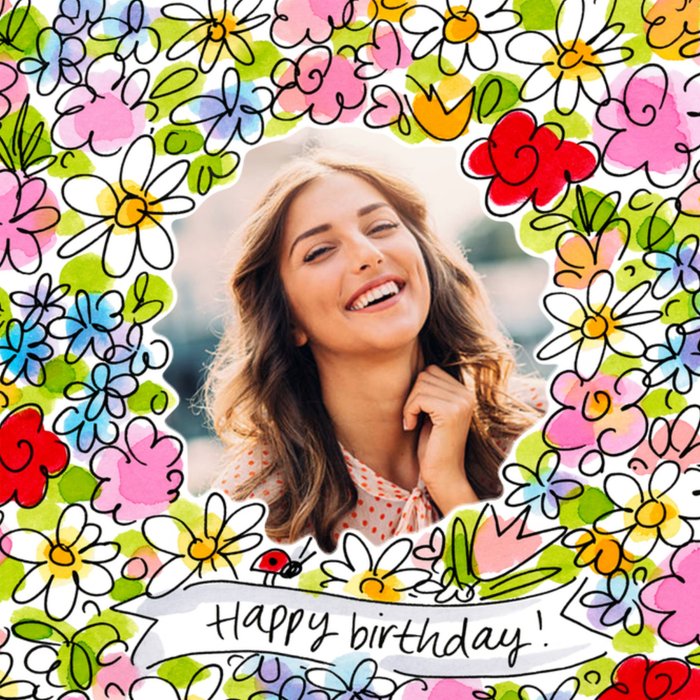 Jij kent iemand die binnenkort jarig is! Feliciteer dan met deze vrolijke verjaardagskaart van Blond Amsterdam! Op deze verjaardagskaart staan heel veel bloemen en: Happy birthday.