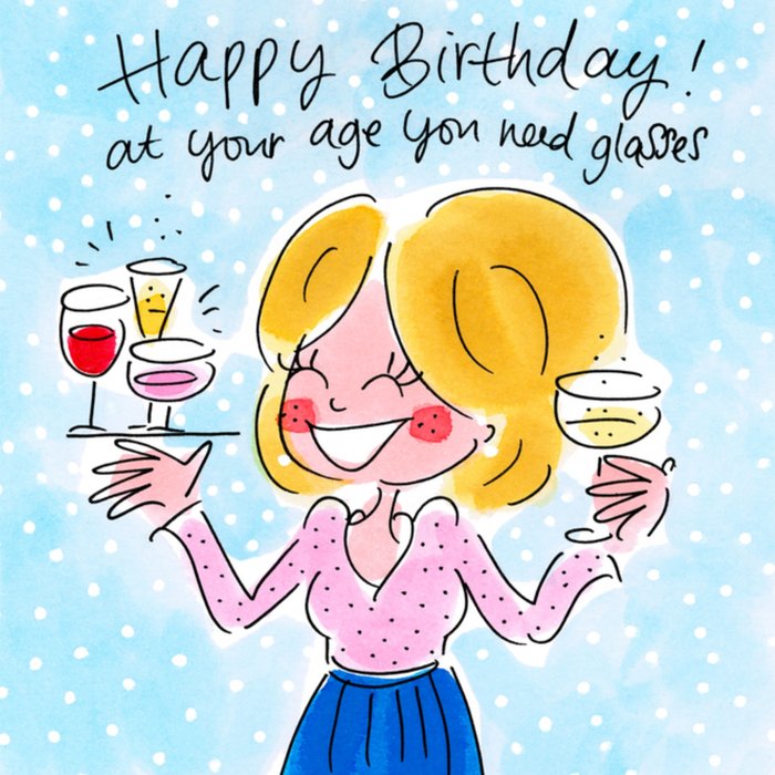 Jij kent iemand die binnenkort jarig is! Feliciteer dan met deze vrolijke verjaardagskaart van Blond Amsterdam! Op deze verjaardagskaart staat; Happy birthday! At your age you need glasses.