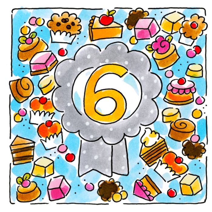Een leuke kaart van blond met in het midden een '6'.