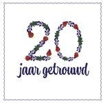 Kleurrijke huwelijks jubileum kaart met de tekst: '20 jaar getrouwd'. Verras iemand met deze leuke wenskaart van Boerenbont.