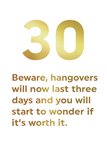 Grappige verjaardagskaart met de tekst: 30. Beware, hangovers will now last three days and you will start to wonder if it's worth it.