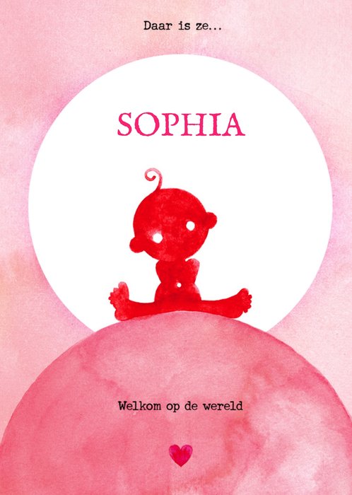 Leuke geboortekaart met aanpasbare naam en illustratie.