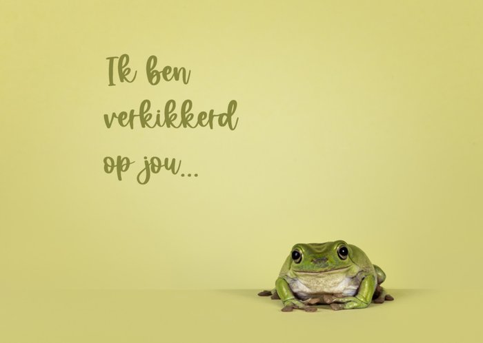 Leuke liefdeskaart met kikker en de tekst: Ik ben verkikkerd op jou...