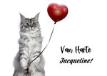 Leuke verjaardagskaart met kat en aanpasbare naam.