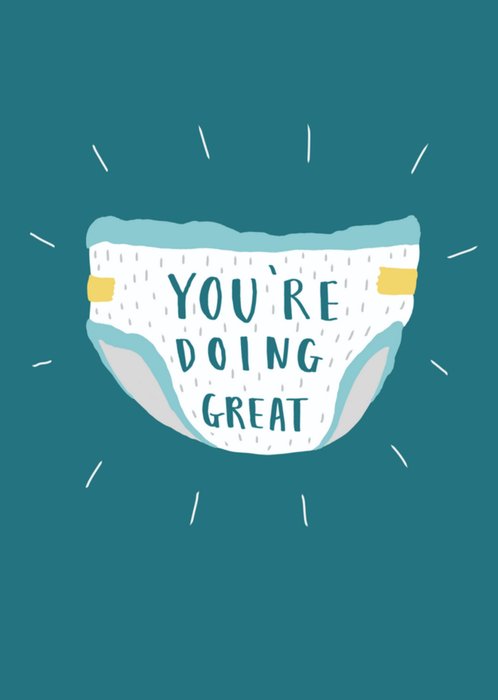 Leuke geboortekaart met illustratie van een luier en de tekst: You're doing great.