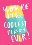 Vrolijke verjaardagskaart met illustratie van een ijsje en de tekst: You're the coolest person ever!