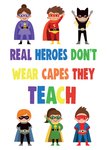 Leuke bedanktkaart met illustratie en de tekst: Real heroes don't wear capes they teach.