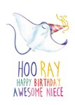 Op deze kaart staat: Hoo ray happy birhday awesome niece.