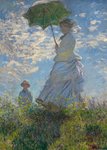 Op deze kunstkaart staat een wandelende vrouw met een parasol om haar tegen de zon te