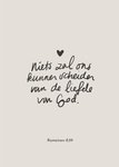 Verras met deze wenskaart met de tekst: Niets zal ons kunnen scheiden van de liefde van God.