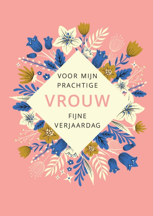 Fleurige verjaardagskaart met de tekst: Voor mijn prachtige vrouw, fijne verjaardag.