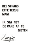Witte uitnodiging van Loesje met grappige tekst op de voorkant. De uitnodiging is voor een verjaardag.