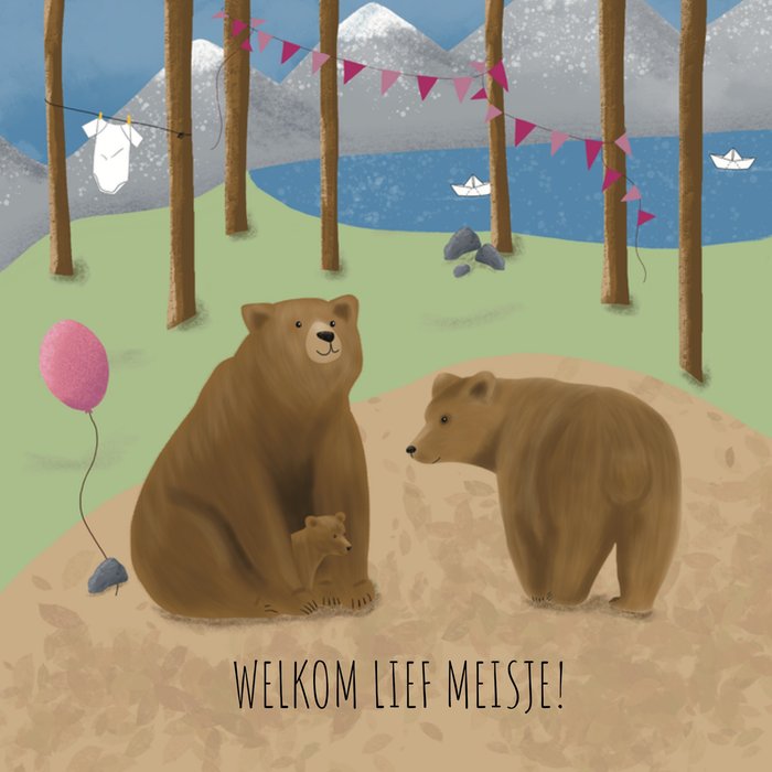 Verras met deze zoete Geboortekaart met de tekst: 'Welkom lief meisje!'. De tekst is aanpasbaar.