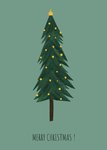 Illustratieve kerstkaart met een kerstboom, aanpasbare tekst en groene achtergrond. Verras iemand met deze leuke kerstkaart van De Merkwaardige Studio.