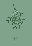 Illustratieve kerstkaart met maretak, aanpasbare tekst en groene achtergrond. Verras iemand met deze leuke kerstkaart van De Merkwaardige Studio.