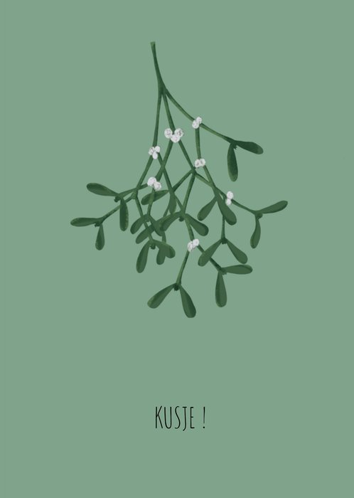 Illustratieve kerstkaart met maretak, aanpasbare tekst en groene achtergrond. Verras iemand met deze leuke kerstkaart van De Merkwaardige Studio.