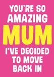 Grappige Moederdagkaart met de tekst: You're so amazing mum i've decided to move back in