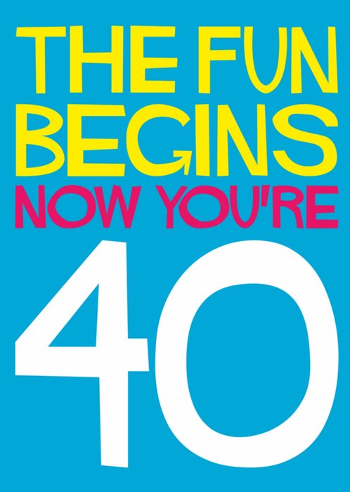 Verjaardagskaart met de tekst: The fun begins now you're 40.