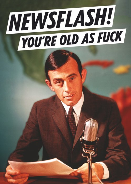 Hiep hiep hoera! Wens een fijne verjaardag met deze leuke verjaardagskaart van Dean Morris. Op de kaart staat: Newsflash! You're old as fuck