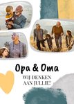 Denk je aan je opa en oma op dit moment? Stuur ze dan deze mooie kaart met aquareltinten. Op de kaart staat de tekst: opa & oma, wij denken aan jullie! Ook kun je meerdere foto's toevoegen.