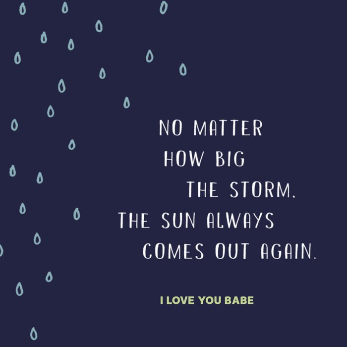 Leuke denken aan kaart om naar je wederhelft te sturen met de tekst: No matter how big the storm. The sun always comes out again. I love you babe.