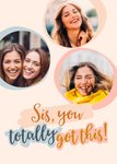 Leuke denken aan kaart om naar je zus te sturen met de tekst: Sis, you totally got this! Voeg drie leuke foto's toe aan de kaart.